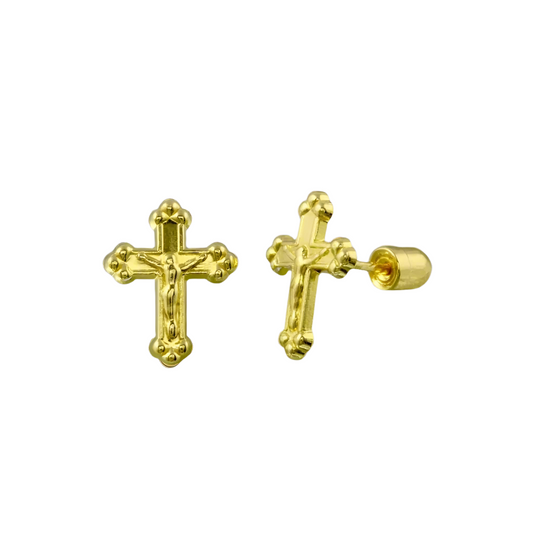 14k Gold Jesus Cross Catholic Crucifix Stud Earrings with Secure Screw Back | Religious Jewelry